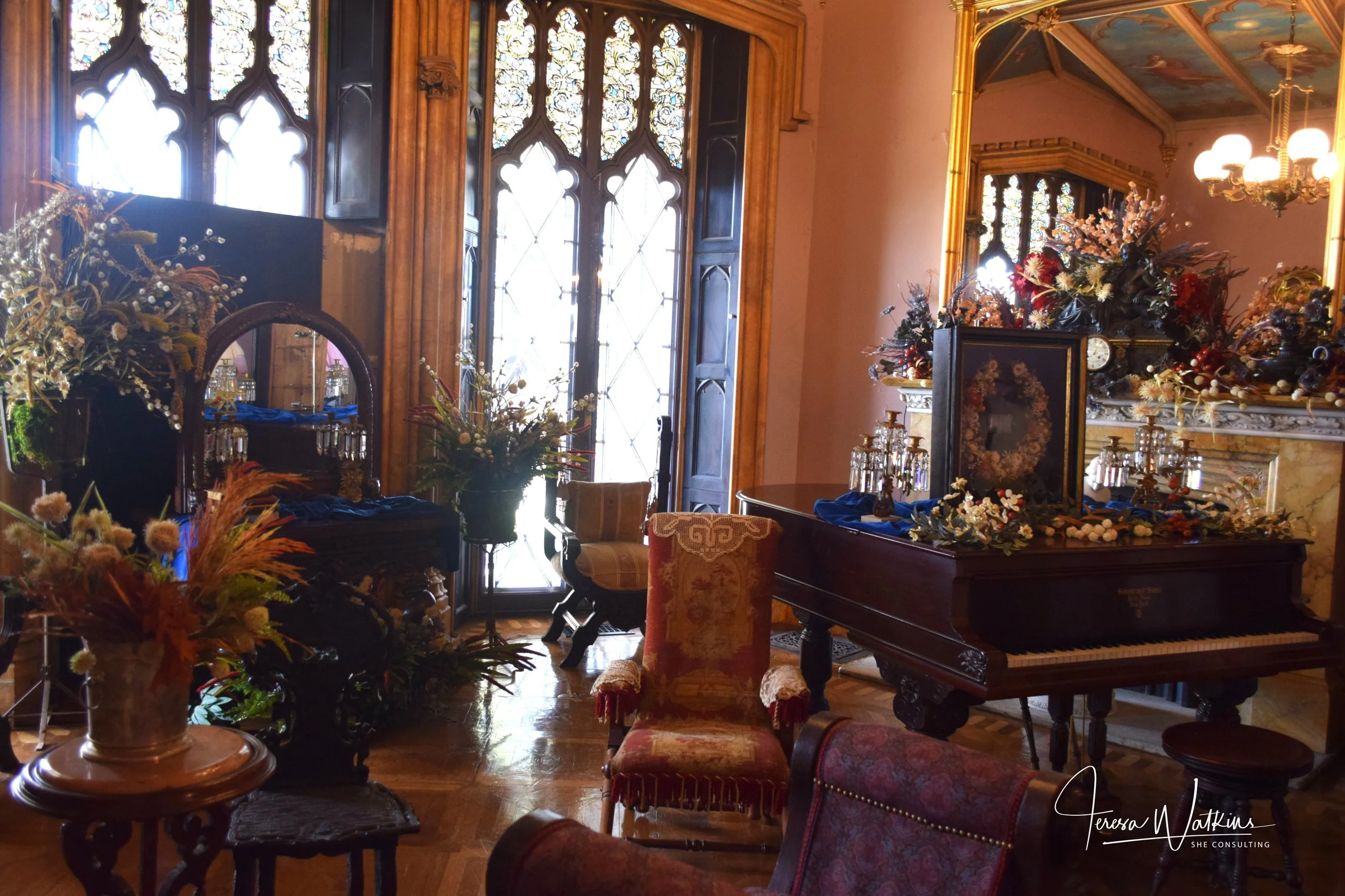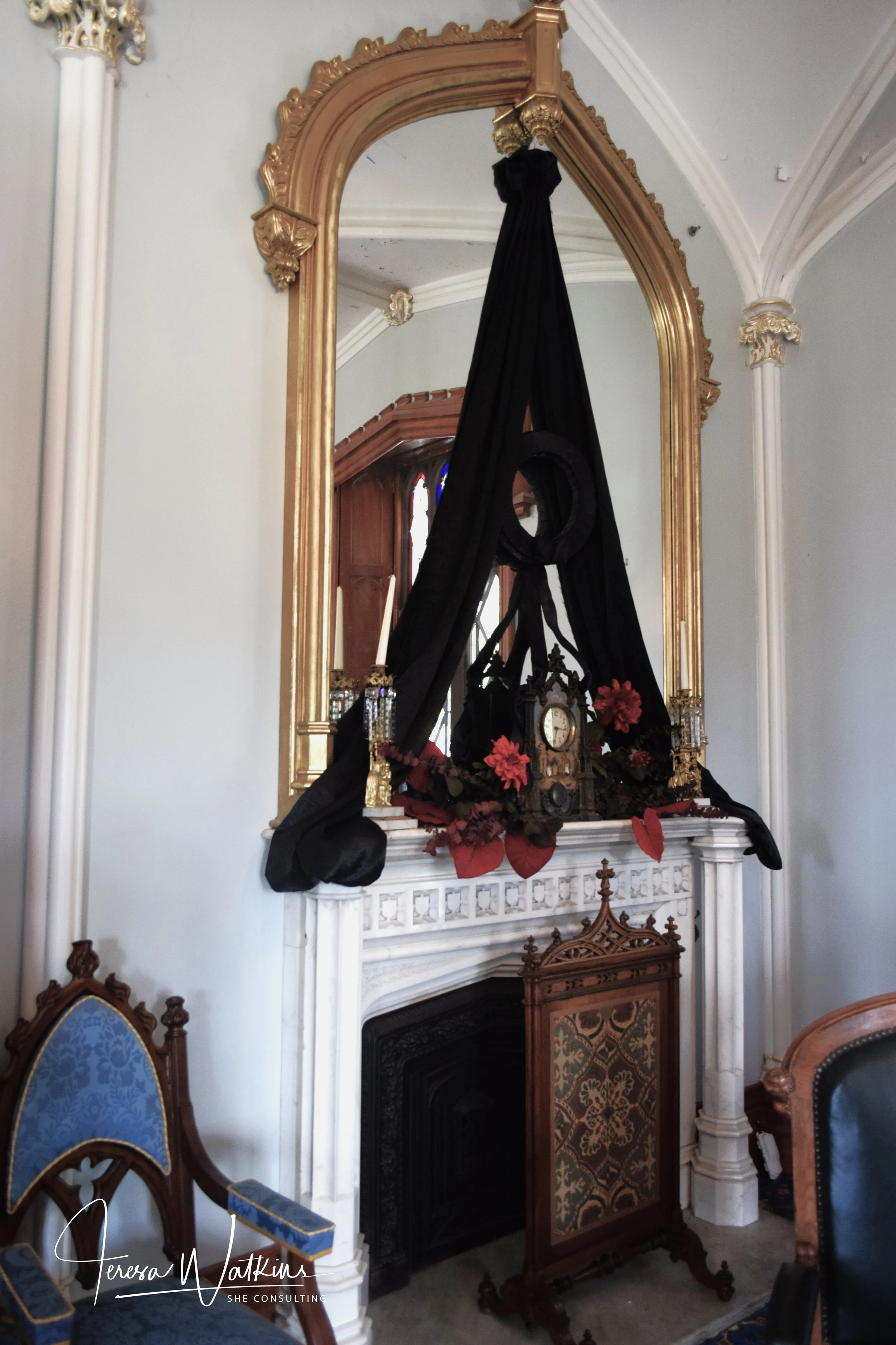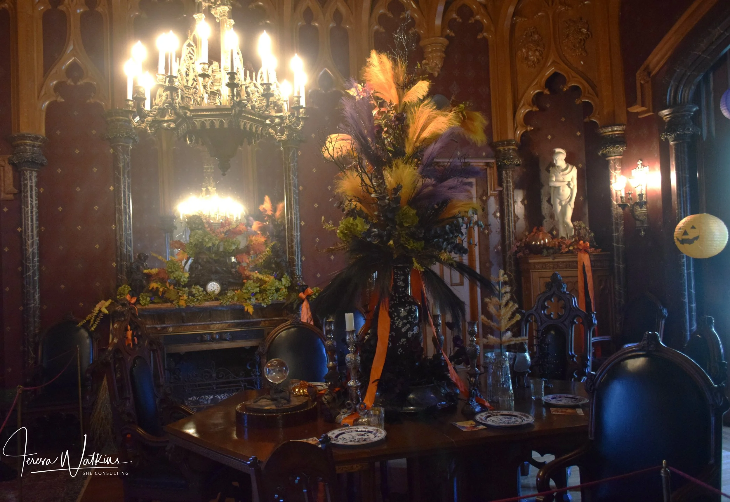 A serendipitous discovery at the Lyndhurst Mansion was that it was used as the exterior backdrop of the mansion for the 1960’s gothic “Dark Shadow” soap opera series. It was my favorite soap opera next to All My Children. The house’s interior was decorated for Halloween and so much fun to walk through. I appreciated that the home did allow for interior photographs.