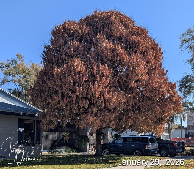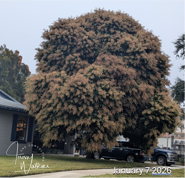 Mangos are a tasty and widely enjoyed tropical fruit that thrive in Central and South Florida. There's a large, beautifully shaped mango tree on my street, that on January 7th had literally thousands of blooms on it. On January 29th, I felt relieved it still looked healthy two days after the freeze. Unfortunately, my relief was short-lived—the tree is now in poor condition and won't bear fruit this year, but I'm hoping it will still pull through to keep its lovely structure. I will update you with a photo of the tree in June. Stay tuned!