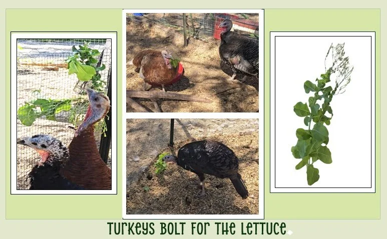 Growing your own produce is already a victory, but the real joy? Handing those homegrown treasures to the turkeys. You’d think they’d be grateful. Nope. Turkeys are surprisingly picky eaters. I enjoy being creative with how to feed them the produce. Like winding around their fencing the Buttercrunch lettuce that decided to bold & grow tall.